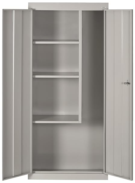These storage cabinets provide janitorial supplies storage, as well as space for brooms, mops, vacuum cleaners and more. Need to transport your storage cabinet, we have the cabinet for you in our mobile storage cabinets section. These cabinets are built to store your heaviest supplies, parts, and equipment. Janitorial supply cabinets are great for organizing cleaning supplies and are built with room for storing a bucket and mop, vacuum cleaners & brooms. Organize building maintenance and cleaning supplies. The janitorial cabinets that do have a full center partition also have shelves for the other half of the cabinet. Janitorial cabinets provide multiple side shelves to store cleaning supplies, along with tall closet storage for vacuum cleaners and brooms. Extra heavy duty compartmented shelf cabinets. Tennsco janitorial supply cabinet, black, 64 x 36 x 18 (tnnjan6618dhbk) no reviews. The sandusky lee value line series janitorial supply cabinet by edsal is designed to organize maintenance supplies, janitorial supplies, or gardening and yard supplies in your home, business, or school. Flat bottom shelf space also has plenty of space for larger bulky. The sturdy design ensures many years of reliable use. It provides three half shelves for cleaning supplies, extra tall storage space for brooms, vacuums and more and a pan style bottom to retain buckets and other supplies.